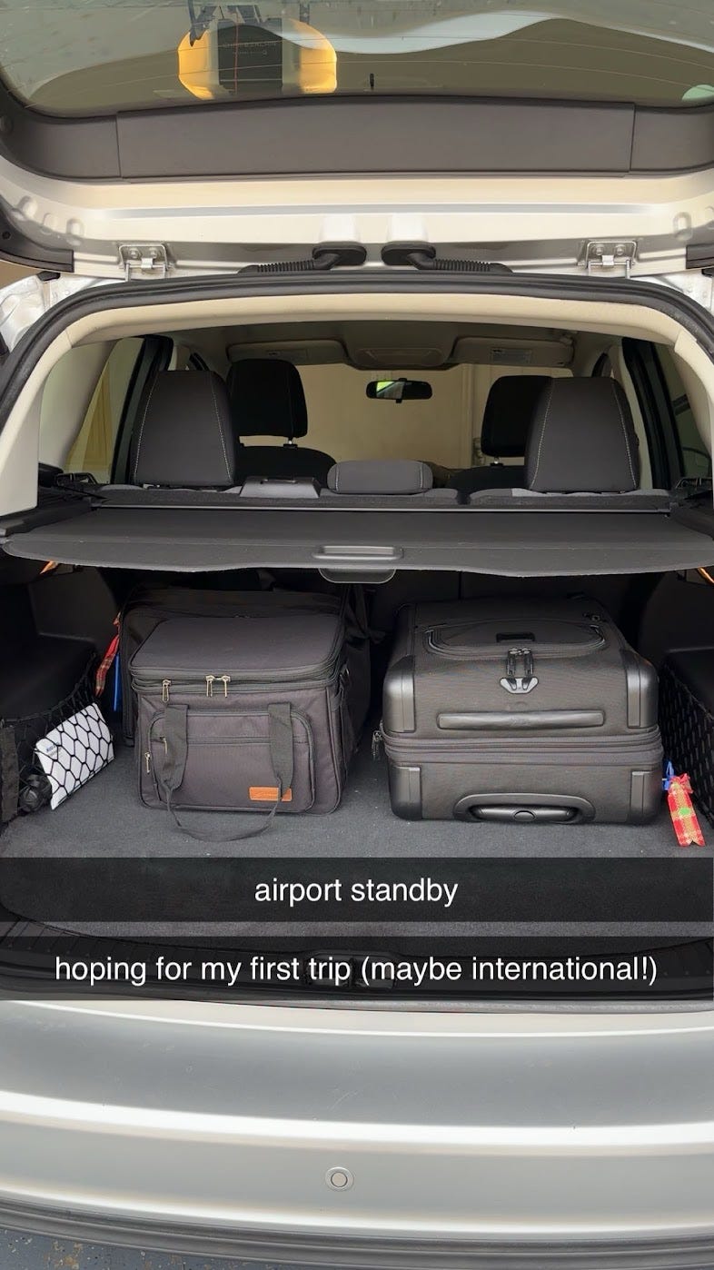My first “official” day of work was Saturday, April 19th, 2025. I am now a Probationary Flight Attendant on reserve. During the first 6 months of your career, you are a Probationary Flight Attendant. The day before, I preferenced that I wanted to do an afternoon Airport Standby shift. I heard that Airport Standby is typically how you can get the best trips as a reserve. If a Flight Attendant is unable to work a trip at the last minute or based on operational needs, I could get called by Crew Scheduling to work that trip. I received the 6PM–10PM standby shift. This is typically when most of the international trips depart, so the chances of me getting assigned an international trip would be greater.